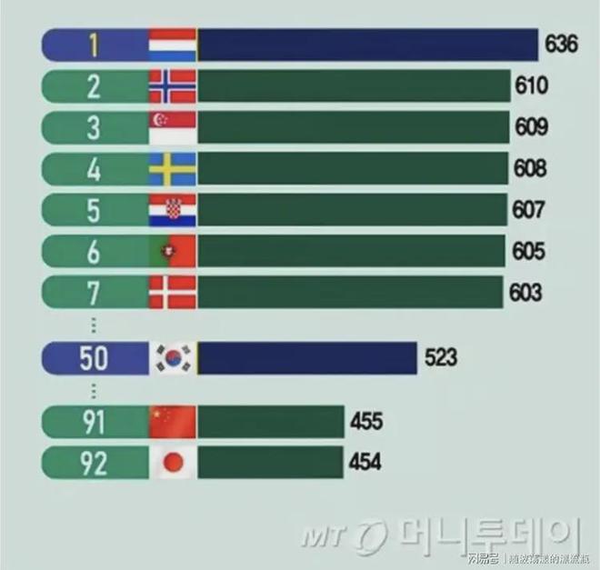 非英语国家的英语水平韩国东亚第一中日国民英语水平“偏低”